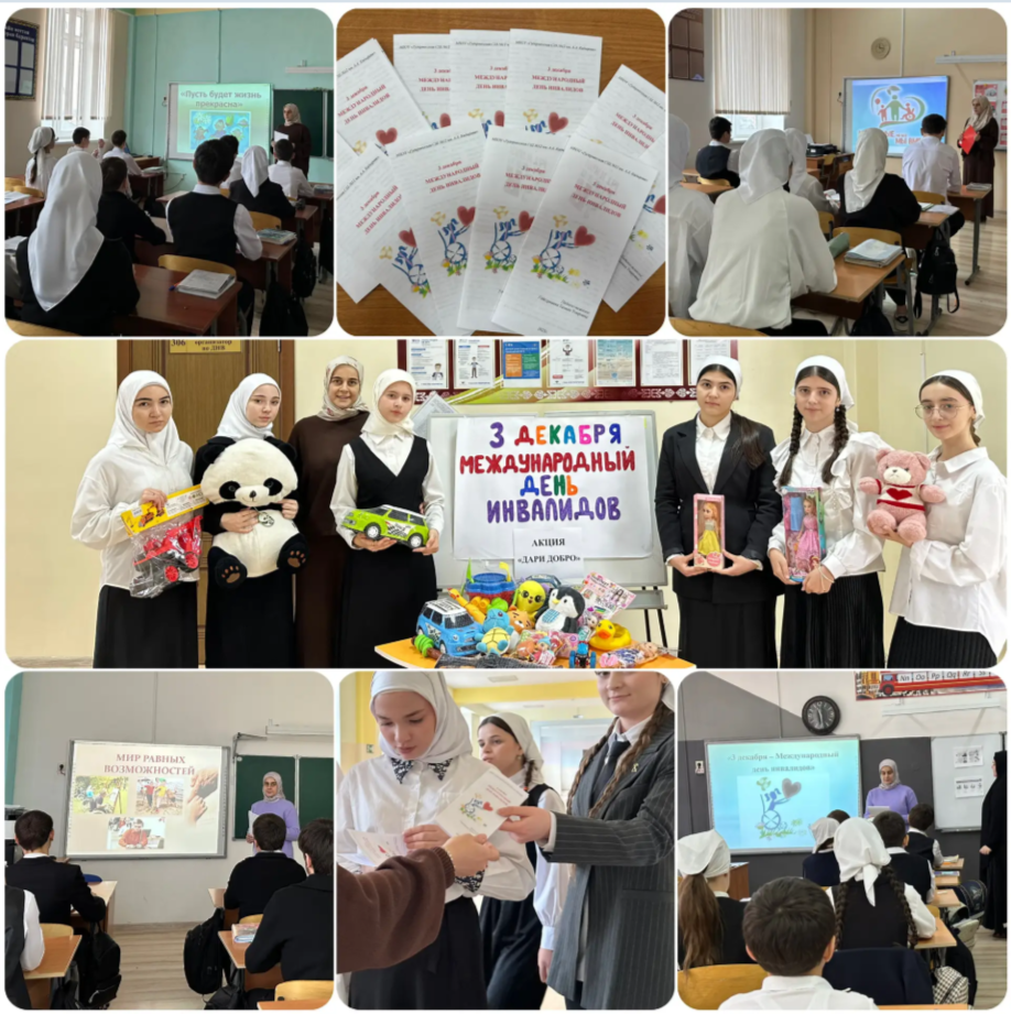 3 декабря по всей Росси отмечается Международный день инвалидов. В связи с этим в МБОУ "Гудермесская СШ № 12 им. А.А. Кадырова" с 28 ноября по 8 декабря 2025 года педагог-психолог Гайсуркаева Т.У. провела мероприятия для повышения осведомленности и воспитания толерантного отношения к людям с ограниченными возможностями здоровья. С учащимися были проведены беседы, трененговые занятия, акции, так же педагог-психолог раздала памятки с целью повышения осведомленности.