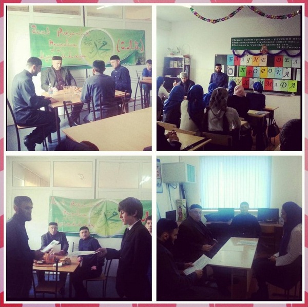 24.12.201524 декабря в школе прошел конкурс "Лучший знаток семейного паспорта Пророка Мухаммада (С.А.В.)" . Лучший знатоком по итогам конкурса признам Сусуркаев Абубакар - учащийся 9 "Б" класса! После завершения конкурса прошло чтение мовлида посвященного наступлению священного месяца Раби-уль-Авваль и Дню рождения Пророка Мухаммада (С.А.В.)