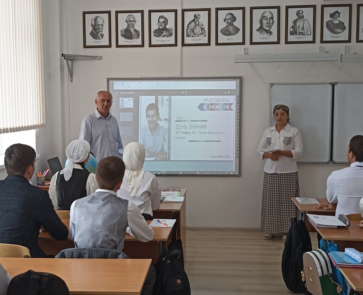 05.09.2022Сегодня, в первый понедельник сентября, в МБОУ «Гудермесская СШ №12 им. А. А. Калырова" стартовали внеурочные занятия в рамках проекта «Разговоры о важном». Один из этих уроков провела директор школы Закрыева Хава Хизривна.